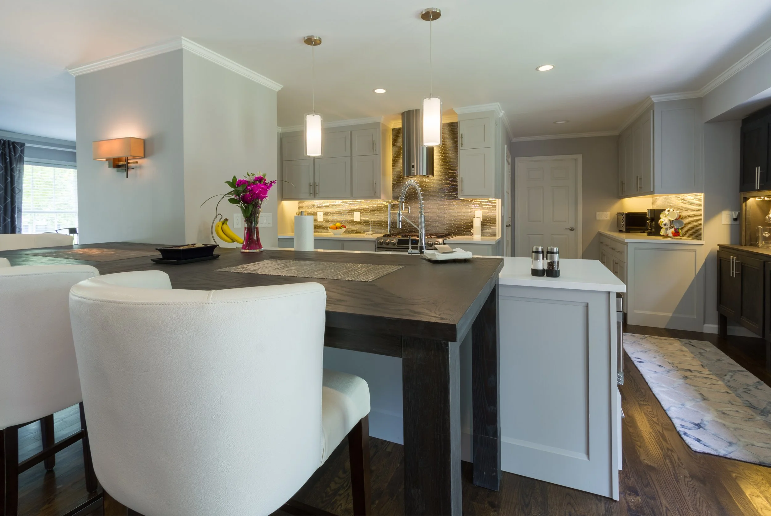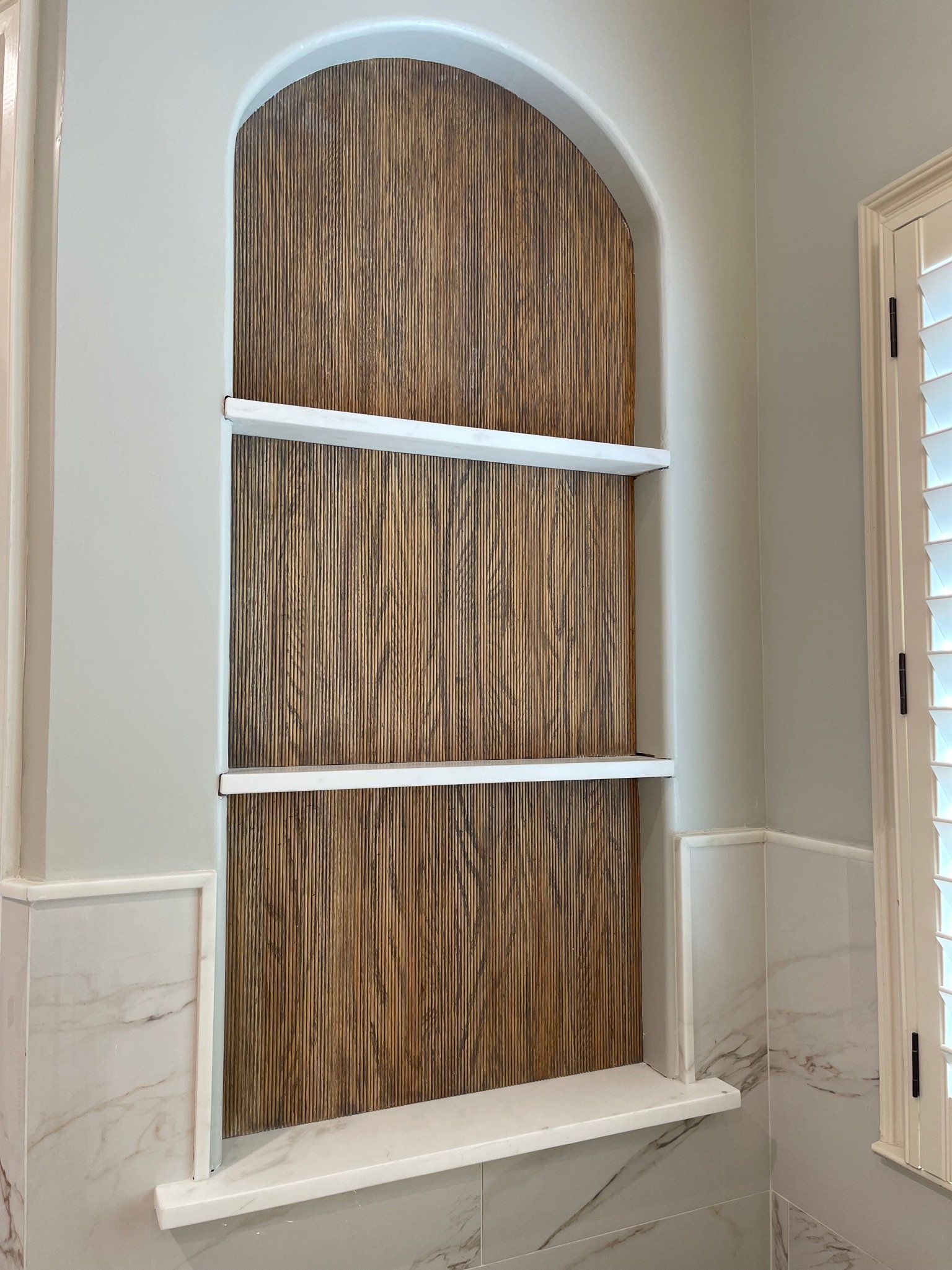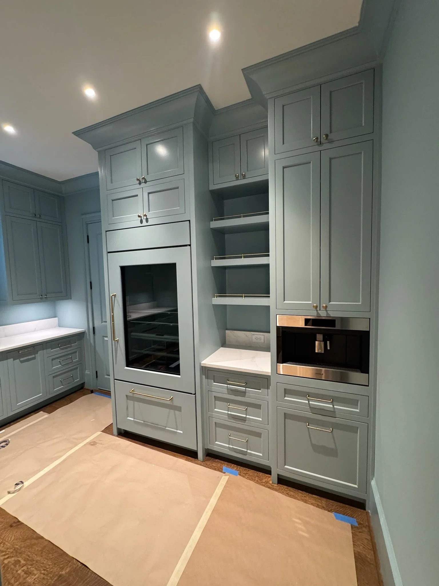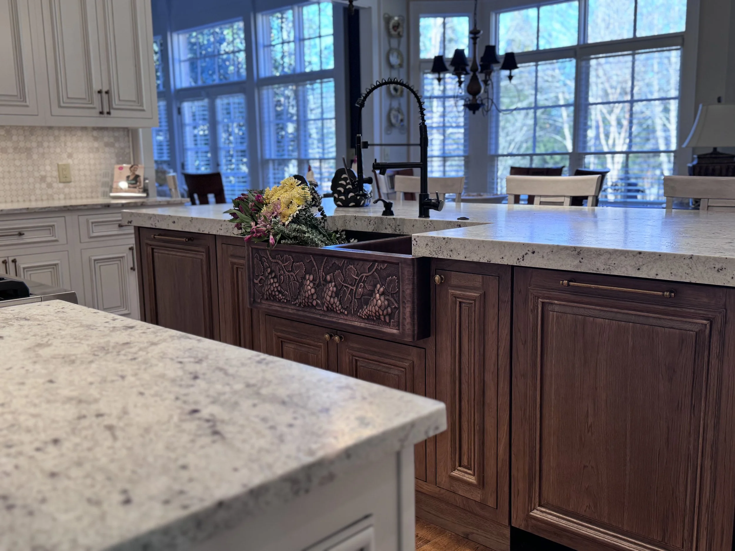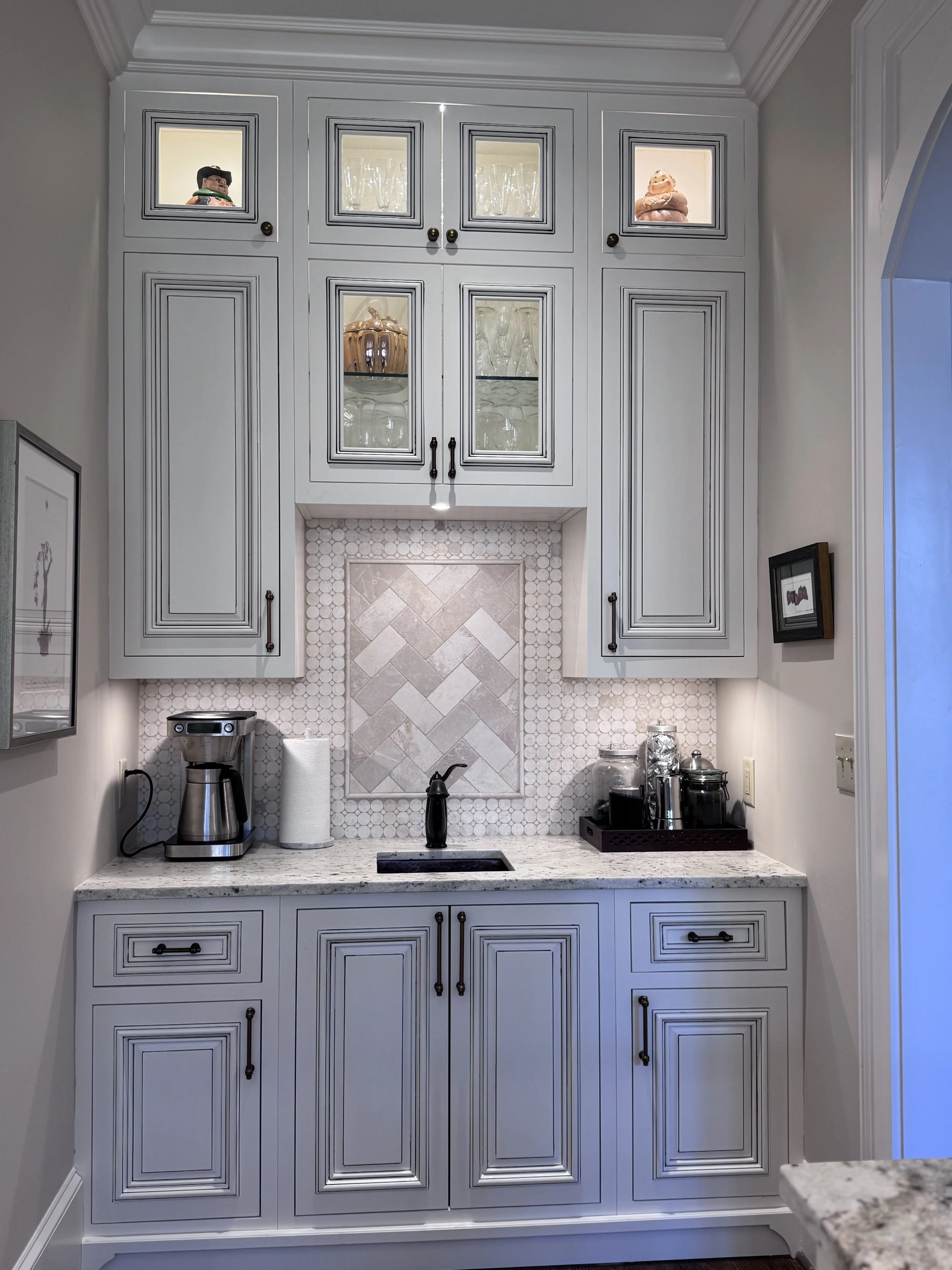 Residential painted kitchen, designed internally by Greg MichaelResidential: Raised panel hickory island, designed internally by Catherine MichaelResidential: Raised panel painted , designed internally by Catherine MichaelResidential: Scullery designed by Greg Michael in collaboration with Beth Westerhouse & Believe InteriorsBathroom niche with reeded panelDesigned by Greg Michael in collaboration with Hart & Locke Design